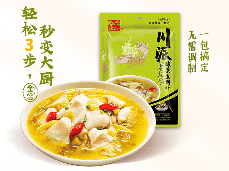 總之,金宮酸菜魚調料是一款非常出色的酸菜魚調料,它使酸菜魚的味道更加豐富多彩,令人回味無窮。如果您喜歡酸菜魚,那么一定要試試金宮酸菜魚調料,相信您一定會愛上它。