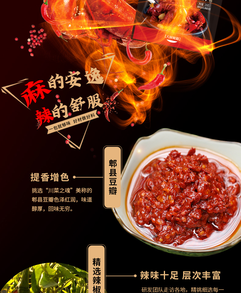 產(chǎn)品特點:辣得舒服,麻得安逸